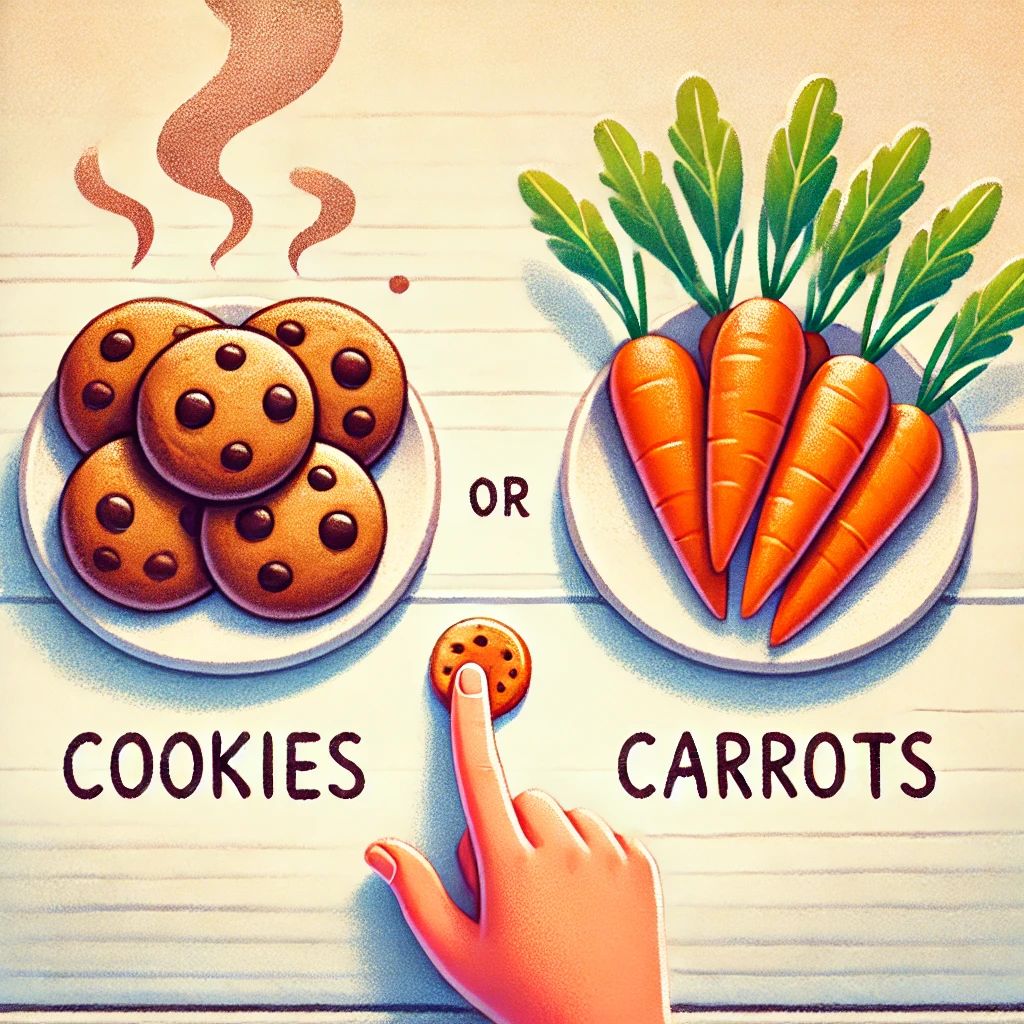 Hmmm… 🤔 My Taste Buds are screaming, “Ooey-gooey, warm-from-the-oven chocolate chip toffee cookies!” But my Heart is gently reminding me, “We promised to go healthy in 2025—how about carrot sticks and cherry tomatoes instead?”