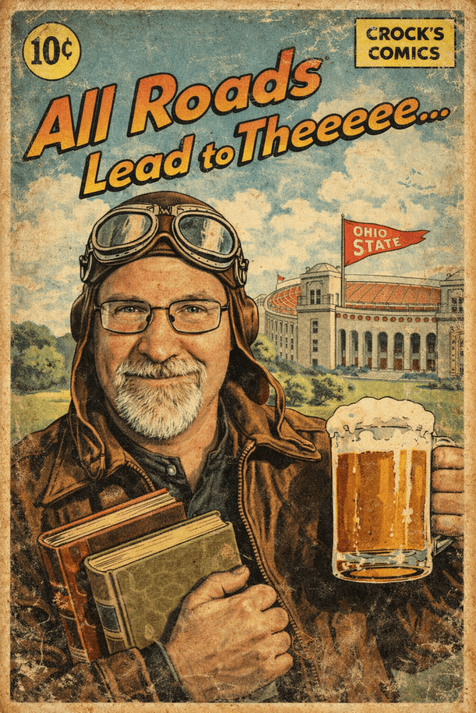 So yes, I survived college, eventually graduated, and emerged slightly wiser, mostly intact, and permanently Buckeye-branded. Side effects include random fight-song humming, an uncontrollable urge to correct people when they forget the extra E’s, and a strict personal policy of not using the letter “M” when referring to that school up north… you know, the one better known as… I better whisper this part… psst, psst… Sorry, not sorry… but we never really say the actual name of the state up north. Just saying… 🤷
