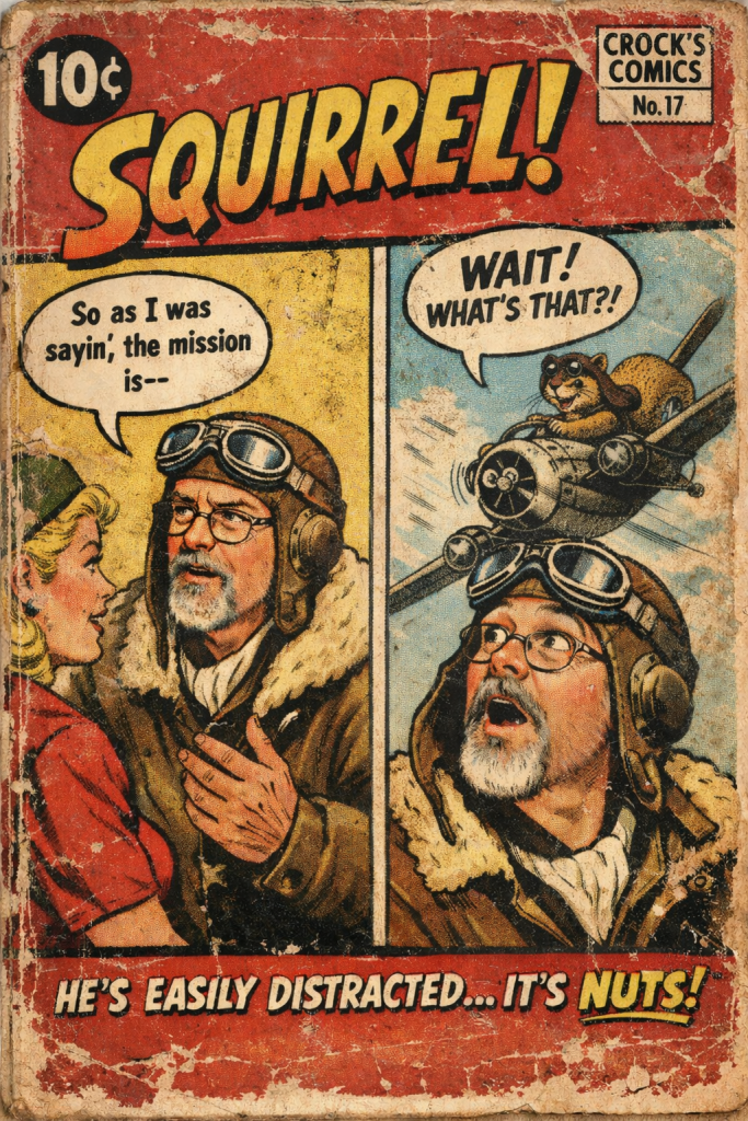 There’s a reason my bio includes that little disclaimer about being “easily distracted.” I am that dog from the movie UP. One moment I’m calm, present… and then, boom! SQUIRREL! The conversation derailed; thought abandoned; and new obsession unlocked!